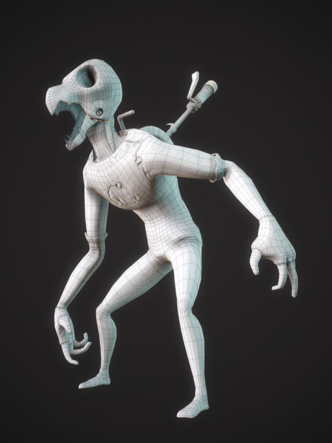 I modeled, sculpted, textured and rigged up this game-centric "lever creature" based on the amazing character concept illustration by Jesse Turner. This was my first time rigging up a character that had rigid props attached to it's body, was really fun figuring out how to get it working!